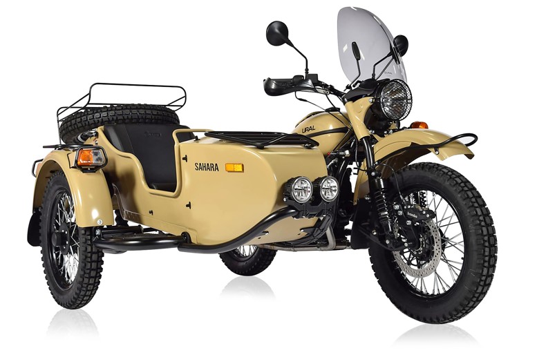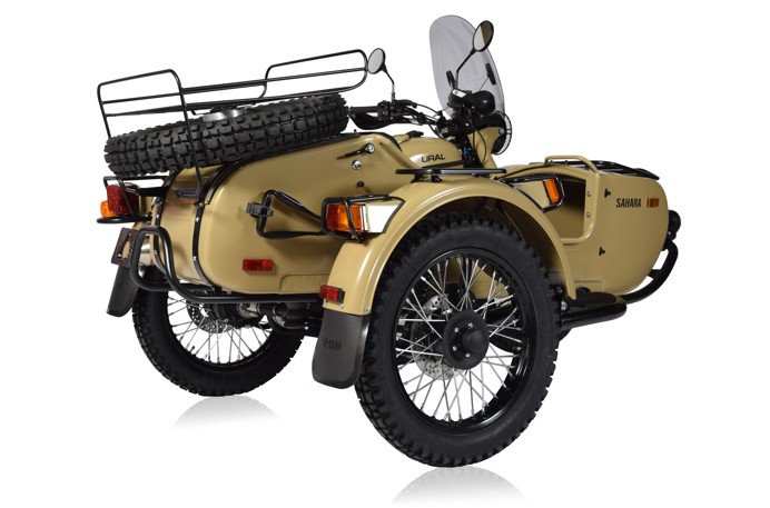 La Sahara parte de una Gear Up estándar, acentuada con una cadena cinemática negra, depósito de combustible con caja de herramientas y pintura y adhesivos Sahara personalizados. Se añaden protectores de piernas, protectores de manos y un parabrisas ahumado para proteger al piloto de la penetrante arena y los abrasadores vientos del desierto. El faro delantero de la moto está protegido por un protector de piedra, y el faro trasero está protegido por un sólido cortafuegos trasero. Los portaequipajes adicionales se atornillan al morro y al guardabarros del sidecar para aumentar la capacidad de carga, y se proporciona protección adicional mediante protectores de intermitentes y un sólido parachoques lateral.